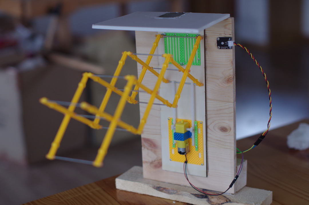 项目用到了的伸缩起降机的机械原理,雨水导电引起雨滴模块值得变化,光敏二极管检测光线,Iot物联网的简单应用。